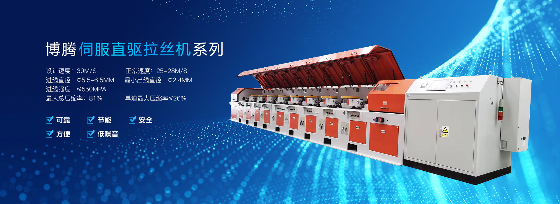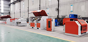 主要產(chǎn)品有直連式拉絲機(jī)+高速直線鍍銅焊絲生產(chǎn)線、CRZ-3000型全自動(dòng)焊絲層繞機(jī)、各種規(guī)格直進(jìn)式拉絲機(jī)(LSJ300~LSJ800),SDJ-300型砂帶拋光機(jī),各種規(guī)格的工字輪收、放線機(jī)、鋼帶復(fù)繞機(jī)等。直進(jìn)式拉絲機(jī)技術(shù)經(jīng)不斷改進(jìn)和完善,適用于多種領(lǐng)域,主要用于鍍鋅鐵絲、胎圈鋼絲、簾線鋼絲、鋁焊絲(含鋁鎂合金絲)、不銹鋼絲、藥芯焊絲、氣體保護(hù)焊絲等金屬線材。