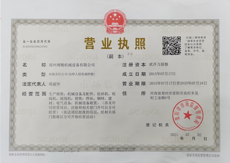 鄭州博騰機(jī)械設(shè)備有限公司是一家從事金屬制品拉拔設(shè)備、電控設(shè)備及其輔機(jī)的研發(fā)、設(shè)計(jì)及制造于一體的綜合型企業(yè),我公司擁有一批經(jīng)驗(yàn)豐富的專業(yè)技術(shù)人才和優(yōu)秀的生產(chǎn)管理人才,公司生產(chǎn)設(shè)備齊全,檢測(cè)手段完善。